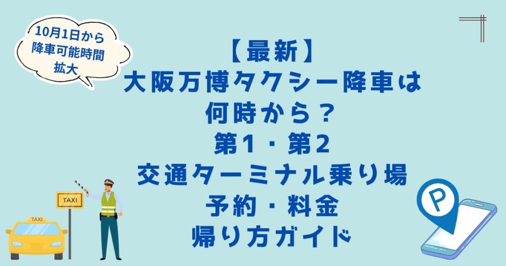 【最新】大阪万博タクシー降車は何時から?第1・第2交通ターミナル乗り場・予約・料金・帰り方ガイド