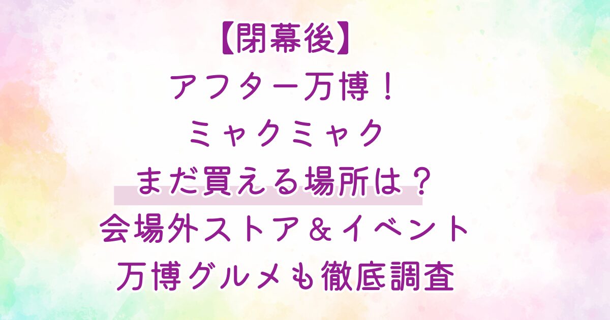 会場外では、ミャクミャクグッズ販売や特別フェアに加え、レストランコラボ・花火大会・キャンペーンなど、閉幕後も万博の余韻を楽しめる企画が目白押し!