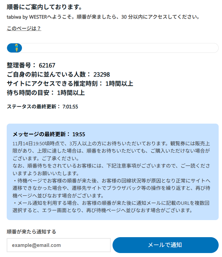 【最新】tabiwa再販後の予約状況は?待ち時間は「1時間以上」が続く混雑ぶり