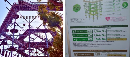 秋の紅葉を眺めながら、万博記念公園の森で体を動かすアスレチック体験ができます。