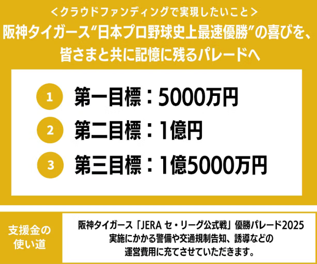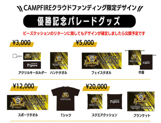 👉 阪神タイガース優勝記念パレードクラウドファンディング(CAMPFIRE公式)