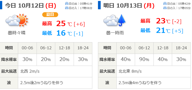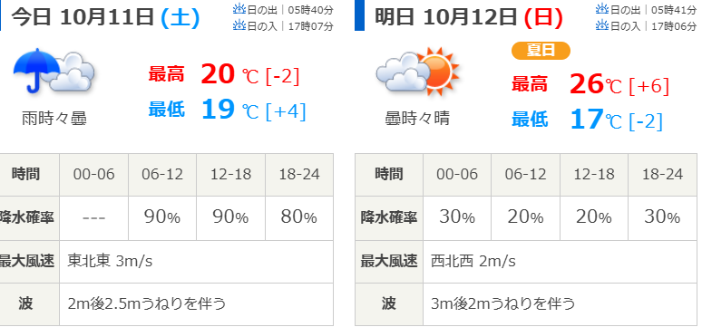 順延となった理由と10月12日(日)の天気予報は?