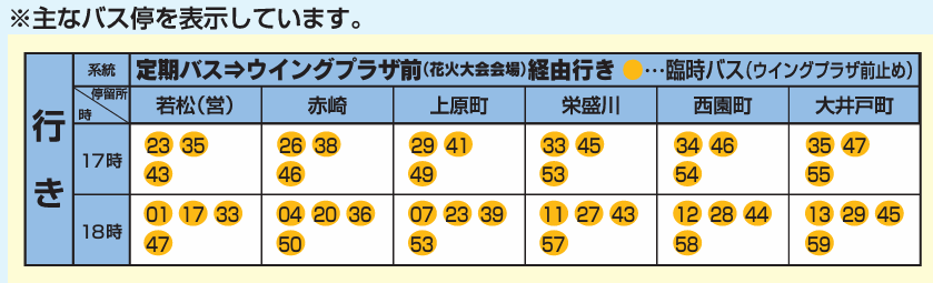 花火大会当日は、臨時バスが増便運行されますが、終了直後はどの便も大変混雑します。