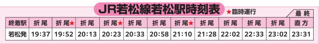 最終便や遅い時間帯の発車時刻をチェックしておくのが安心です。