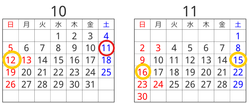 11/15(土) | 代替開催 | 11日・12日が両日とも中止になった場合に実施 | 同上(同時刻・同会場) |