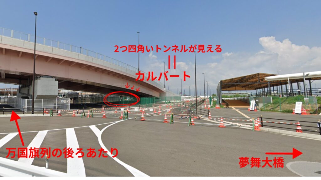 東ゲート付近にあるトンネル状の構造物(カルバートボックス)のこと。