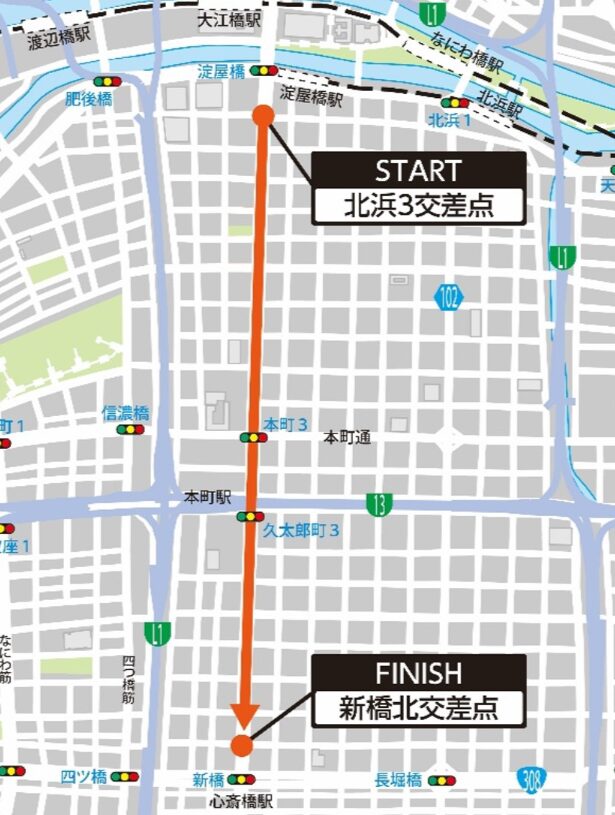 御堂筋(北浜3交差点〜新橋北交差点)で開催されます。