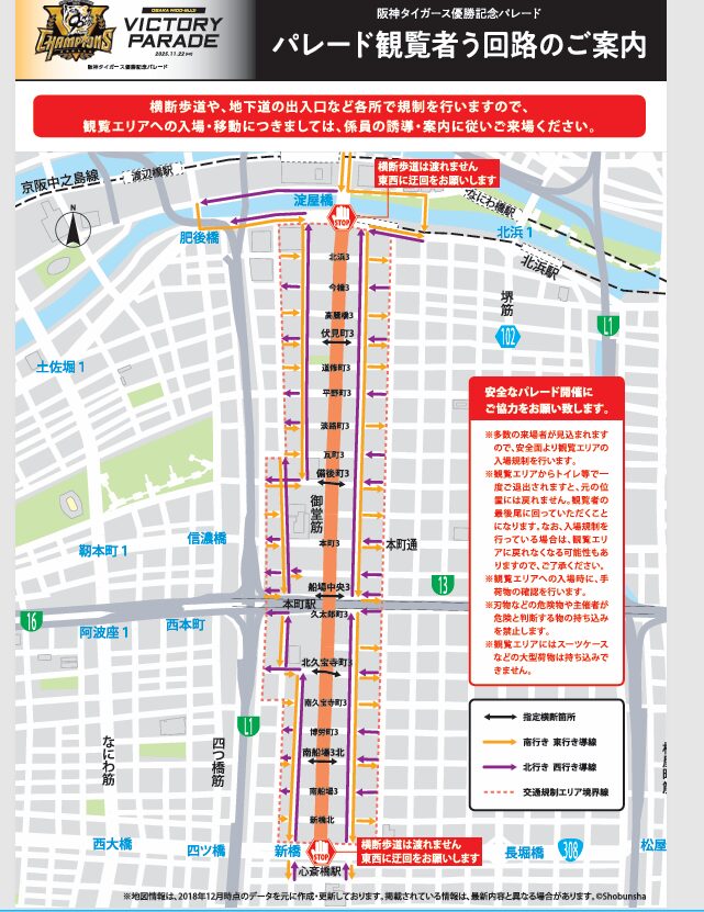 阪神優勝パレード2025交通規制と通行止め解説!アクセス最寄り駅や駐車場・トイレの場所も完全ガイド