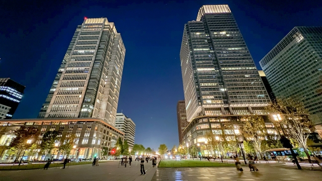 新丸ビルの7階にあるテラスや飲食店エリアからは、行幸通りは垂直下となり鑑賞するには安全柵で見下ろすことは出来ませんが、絶景の夜景が楽しめます。暖かい暖房も設置してある屋外や屋内の飲食店ででコーヒーやバーを楽しみながら食事が出来る最強の穴場です。