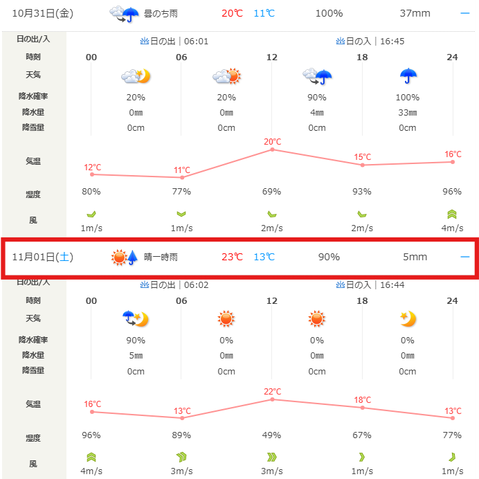 ☑️ 当日の天気確認方法