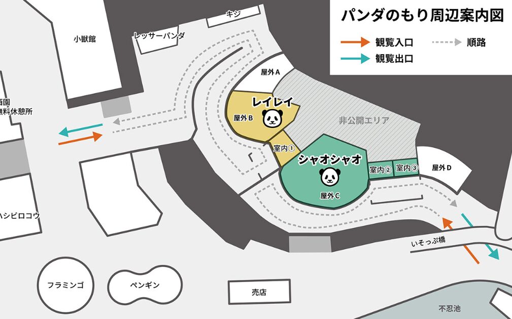 12月16日時点で上野動物園公式ホームページで案内されている~12月21日までの予約不要で訪れる場合の観覧ルートや案内は下記です。
