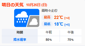 10月26日(日)焼津市の天気予報